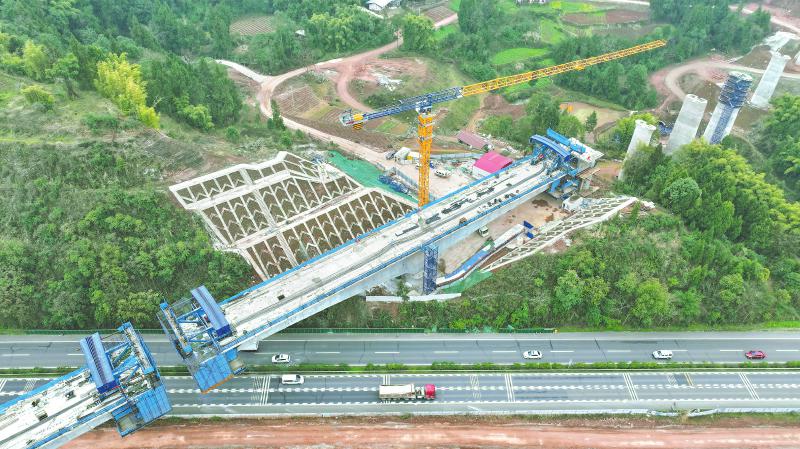 2月21日,位于蓬溪县赤城镇长虹村的成达万高铁跨沪蓉高速特大桥连续梁建设现场一片忙碌,工人忙着进行洒水养护、绑扎钢筋等工作。这是该大桥在蓬溪境内唯一一座大跨连续梁,也是标段的控制性工程。中铁十七局成达万高铁6标第一工区副总工程师蒋华君表示,当前连续梁施工进度过半,正在加快进行上部结构施工,计划今年3月完成合龙。