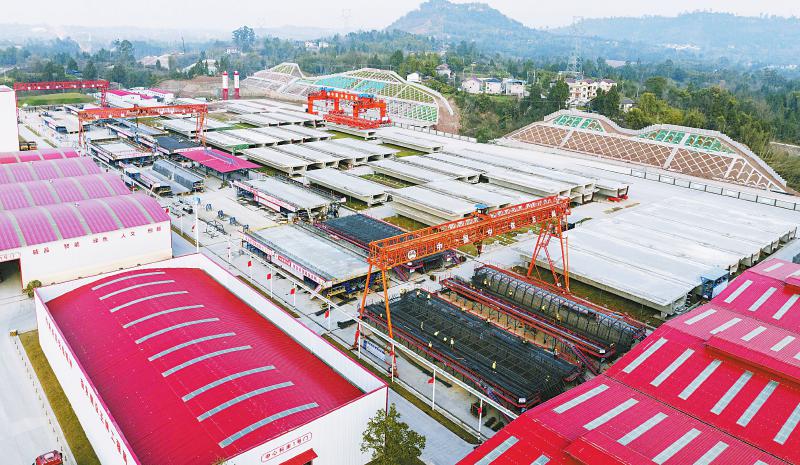2月26日,广安市前锋区代市镇西渝高铁前锋制梁场,西渝高铁广安段箱梁预制快速推进,图为工人正在绑扎浇筑用的箱梁钢筋。 周修建 摄(C视觉)