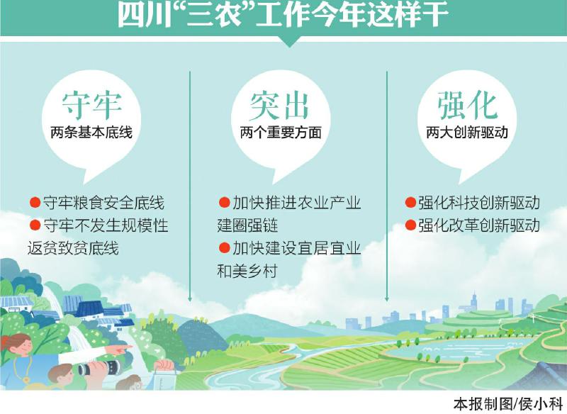 首先是强化科技创新驱动,重点是实施强化农业科技支撑,着力实施农业科技创新效能提升、川种振兴和“天府良机”三大行动。