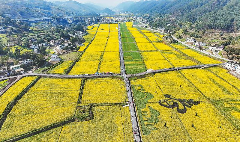 2月28日,在宜宾市高县庆岭镇先娱村,成片的油菜花进入盛开期。贯穿田野的旅游道上,车辆往来穿梭,成群结队的游客来此赏春。 郭烈辉 摄(C视觉)