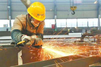 陈毅故里景区。四川福兴杭萧建设有限公司生产车间内焊接工人铆足干劲赶进度。
