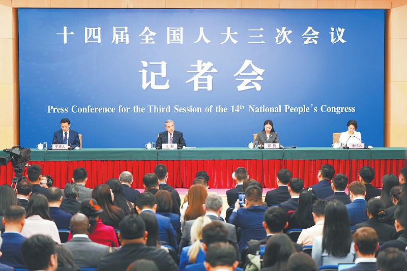 新华社北京3月7日电 3月7日,十四届全国人大三次会议在梅地亚中心举行记者会。中共中央政治局委员、外交部长王毅就中国外交政策和对外关系回答中外记者提问。