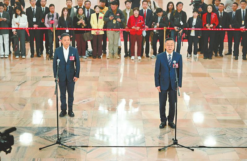 8日上午,十四届全国人大三次会议第二场“代表通道”在人民大会堂中央大厅北侧举行。6位全国人大代表面向中外记者分享一线故事,展现履职风采,凝聚奋进力量。