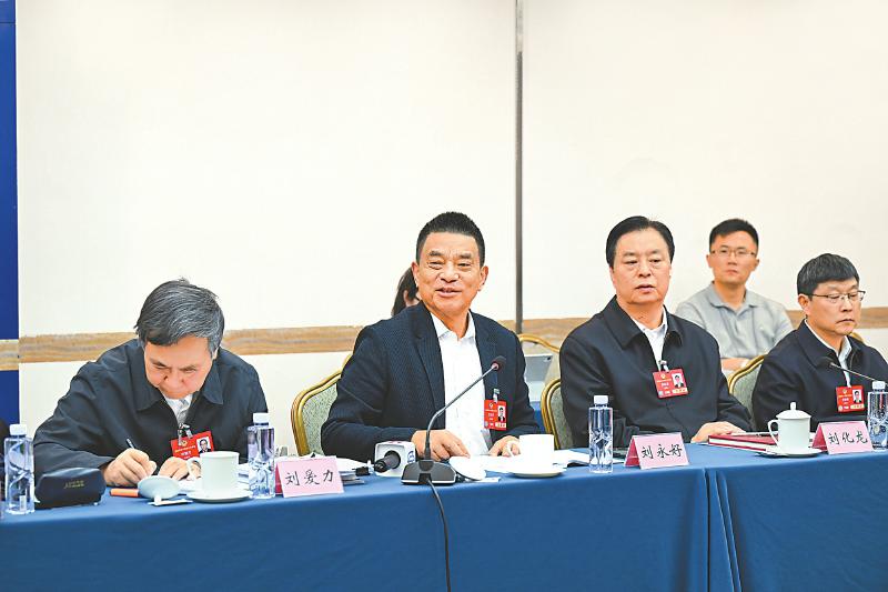 三月六日,四川省全国政协委员刘永好(左二)围绕推动民营经济发展发言。川报集团特派记者 杨树 摄