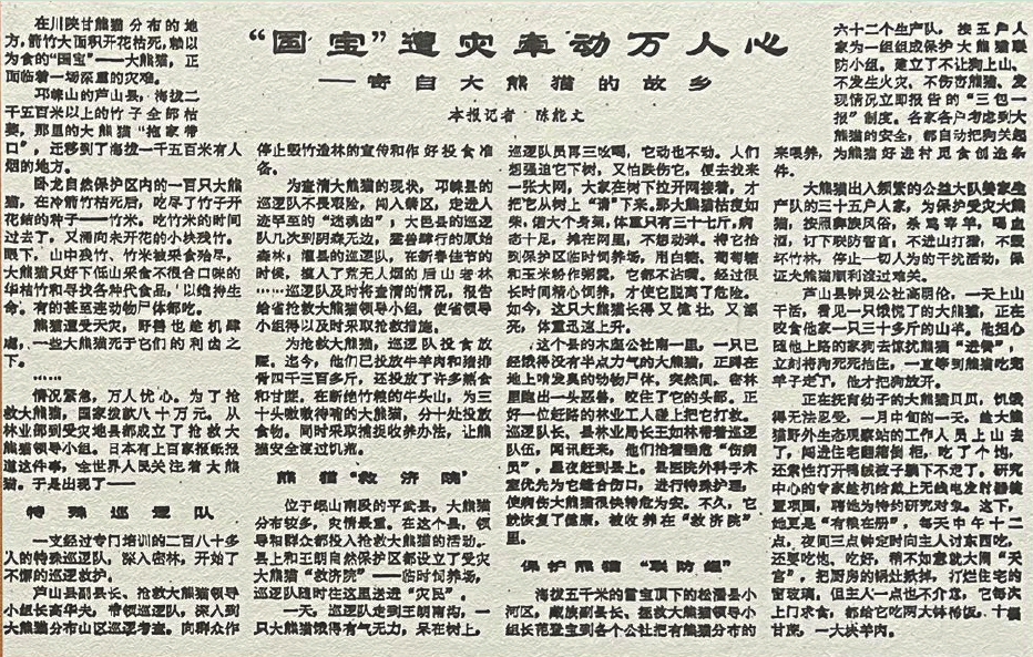 1984年3月29日,《四川日报》二版刊发的《“国宝”遭灾牵动万人心》。