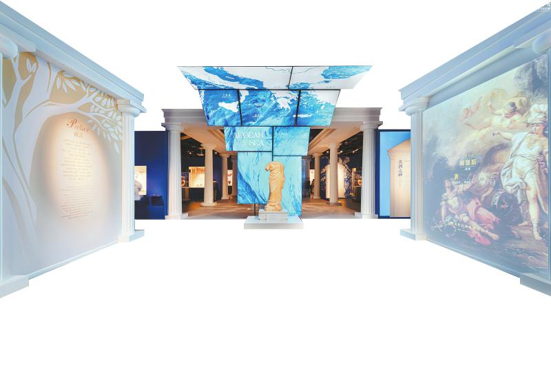 波涛汹涌的蔚蓝海域,一名长着浓密胡须的成年男子,手持三叉戟,为人们提供庇佑。他,就是希腊神话中的海洋之神波塞冬。展览第一单元,通过大量展品体现了波塞冬与海洋文明之间的关系。