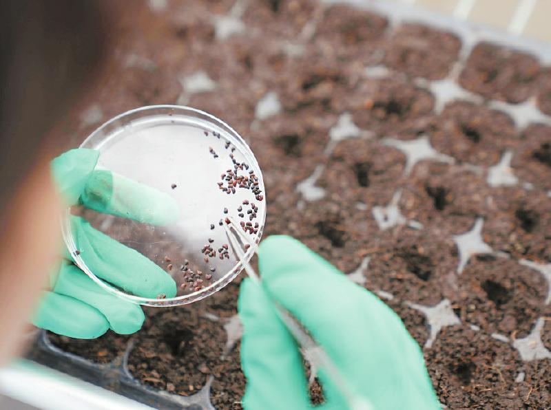 3月13日,在成都市植物园科研苗圃基地,科研人员将芙蓉种子播进泥土中。本轮播种的芙蓉种子中,有7个品种共5500多粒是在去年搭载实践十九号卫星飞上太空的“太空芙蓉”种子。