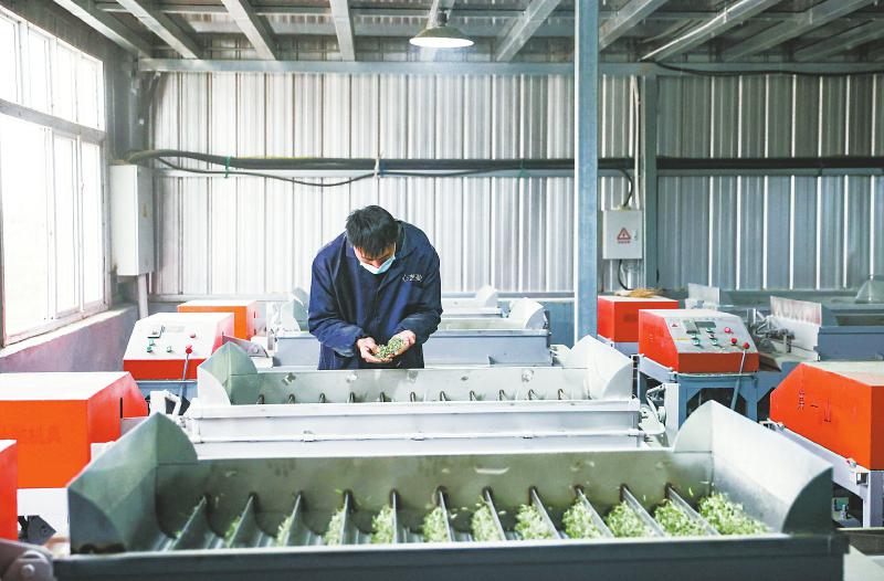 3月11日,在宜宾市翠屏区双谊镇,茶企开足马力生产,确保新鲜早茶以最快速度抵达消费者手中。
