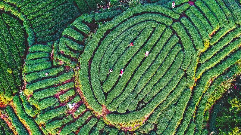 3月12日,俯瞰雅安市名山区的茶园,满山茶树随山势有序起伏,美不胜收。