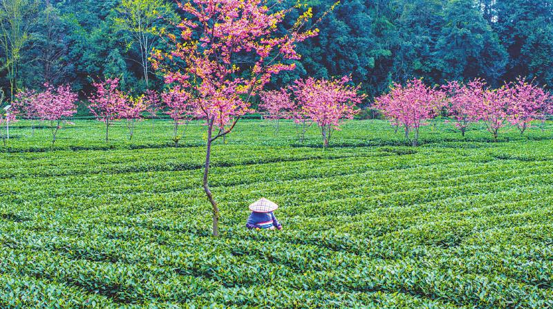 3月15日,雅安市名山区新店镇的茶山上春意盎然。