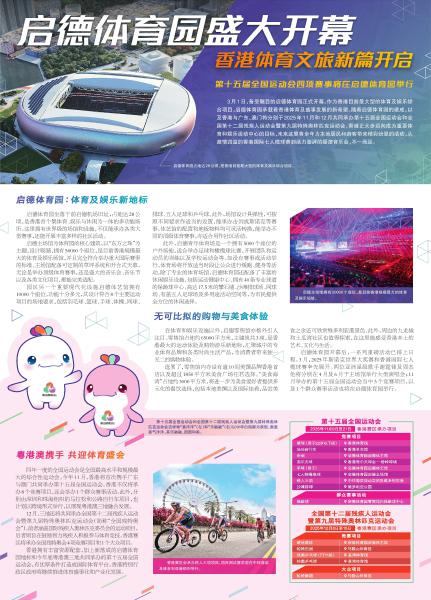 3月1日,备受瞩目的启德体育园正式开幕。作为香港目前最大型的体育及娱乐综合项目,启德体育园承载着香港体育及盛事发展的新希望。随着启德体育园的建成,以及香港与广东、澳门将分别于2025年11月和12月共同承办第十五届全国运动会和全国第十二届残疾人运动会暨第九届特殊奥林匹克运动会,香港正大步迈向成为重要体育和娱乐活动中心的目标,未来这里将全年为本地居民和游客带来精彩纷呈的活动,从激情四溢的香港国际七人榄球赛到活力澎湃的摇滚音乐会,不一而足。