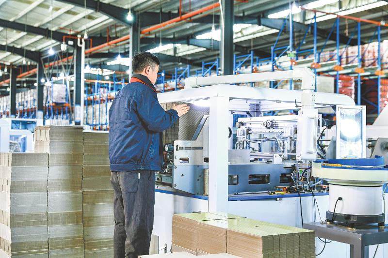 近日,四川合江临港工业园区,工人在泸州宏旭包装制品有限公司生产线上忙碌。 李贵平 摄