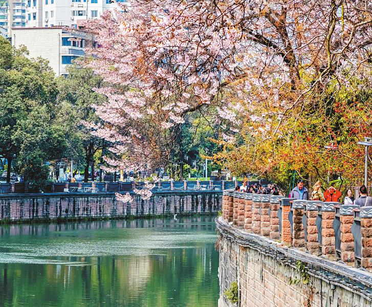 3月21日,成都红星桥府河边的泡桐花如约而至,给这座城市增添了一抹别具一格的浪漫色调,吸引了不少市民前来打卡拍照。 邓显杰 摄(C视觉)