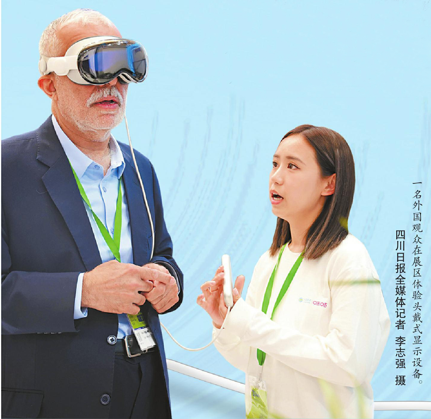 在以成都文旅荣誉局长大熊猫“花花”(昵称花局)为IP打造的“花局AI办公室”里,记者感受到满满的科技感。戴上办公桌上的“AI眼镜”,可以看到AI制作的“花局”短视频。该眼镜还具备40多种语言的同声传译,能够与外国嘉宾进行无障碍交流。工作人员表示,为突出本次网络视听大会的国际性,现场特别选择了大熊猫这张名片,将AI技术与顶流IP结合,打好“大熊猫牌”、讲好成都故事、做好国际传播。