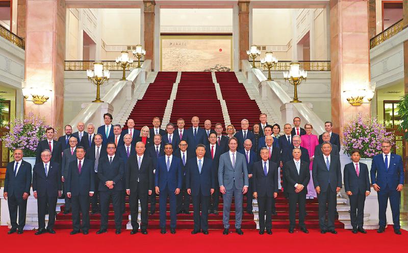 40余位外资企业全球董事长、首席执行官和商协会代表参加会见。美国联邦快递集团总裁芮思博、德国梅赛德斯-奔驰集团董事会主席康林松、法国赛诺菲集团首席执行官韩保罗、英国汇丰控股集团行政总裁艾桥智、日本日立制作所会长东原敏昭、韩国SK海力士社长郭鲁正、沙特阿美总裁纳瑟尔等先后发言。