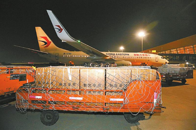救灾物资随中国云南救援医疗队一起飞赴缅甸地震灾区(3月29日摄)。 新华社发(叶勤茹 摄)