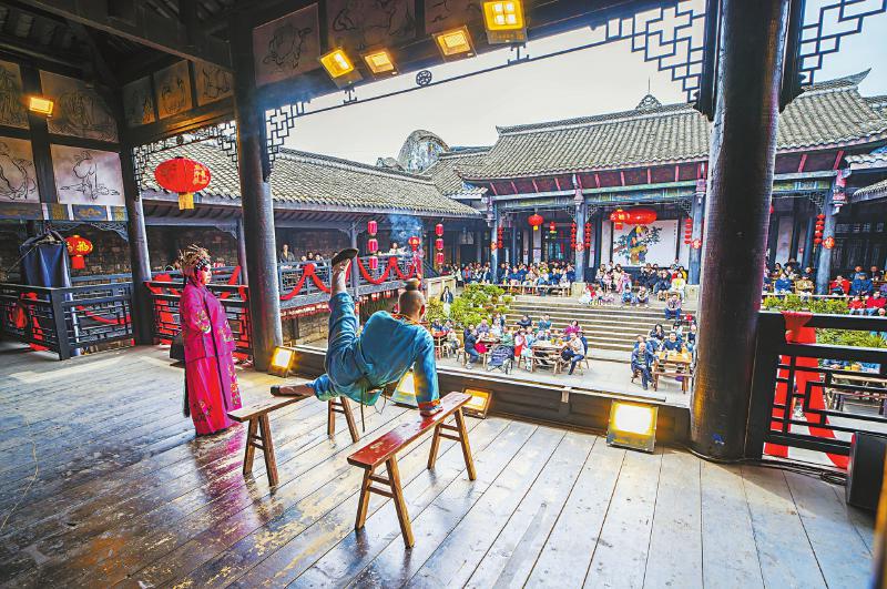 巴中 感受川剧 4月4日,在巴中市恩阳古镇,游客逛古街、看川剧,乐在其中。 付海旭 摄(C视觉)