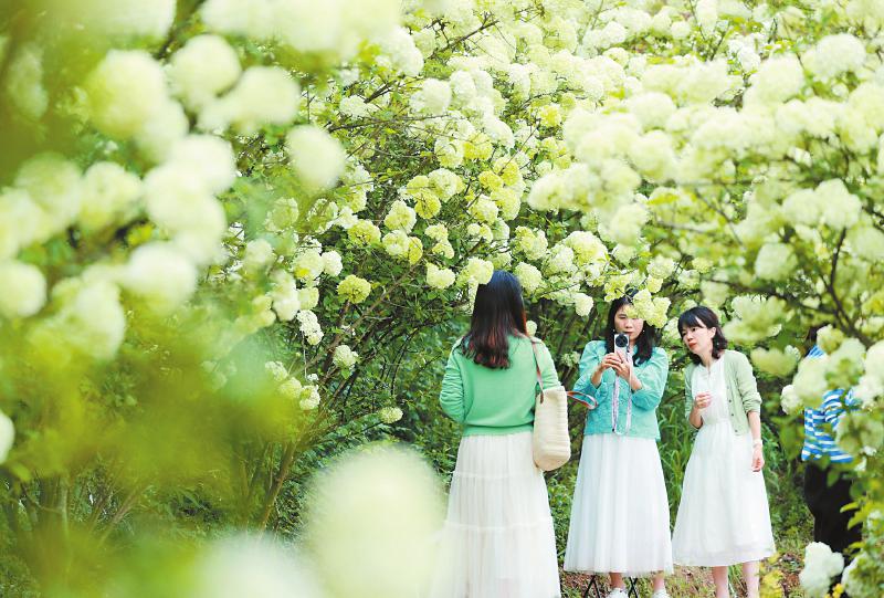 泸州 踏青赏花 4月4日,在泸州市纳溪区丰乐镇马村苗木基地,成片的中华木绣球次第开放。 廖胜春 摄(C视觉)