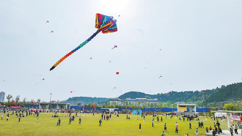 遂宁 纸鸢曼舞 4月4日,在遂宁市安居区凤凰栖景区,各式各样的风筝在空中随风起舞,市民在欢声笑语中享受春日阳光。 张勤宝 摄(C视觉)