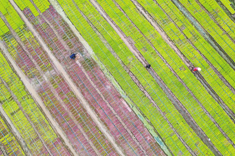 4月4日,在内江市东兴区田家镇,农户在管护早稻秧盘。眼下正是早稻育秧时节,当地积极引导种植大户和专业合作社开展工厂化集中育秧,为农户提供优质的早稻秧苗,全力保障粮食稳产增产。 兰自涛 摄(C视觉)