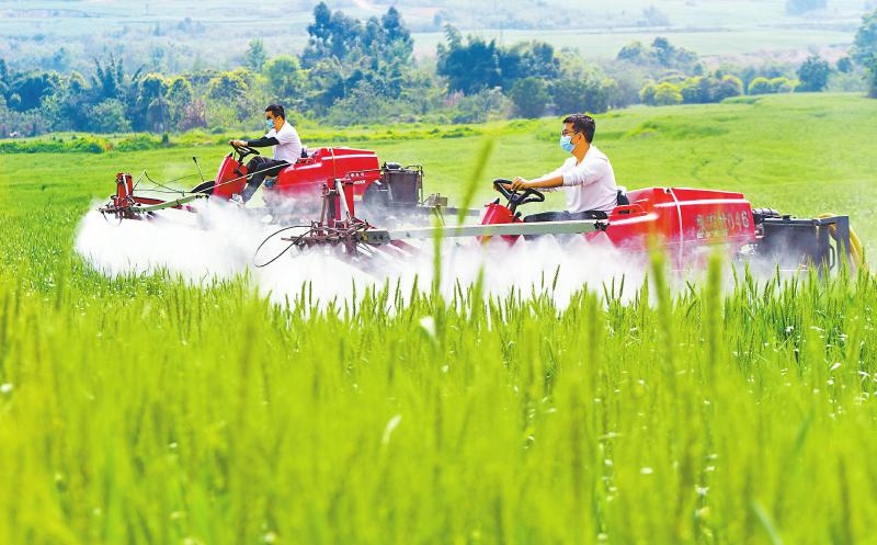 4月9日,在成都市双流区黄水镇桂花社区,“95后”大学生、种粮大户郭嘉和张申杰驾驶自走式喷杆喷雾机对小麦进行植保作业。近年来,双流区农业农村局积极引导大学生到农村创业就业,目前,双流区已有100余名“90后”、“00后”大学本科生和研究生成为“新农人”。他们作为乡村振兴的生力军,为乡村带去新思维、新理念、新业态,将梦想的种子扎根乡土,在希望的田野上耕耘出一片新天地。 四川日报全媒体记者 李向雨 摄