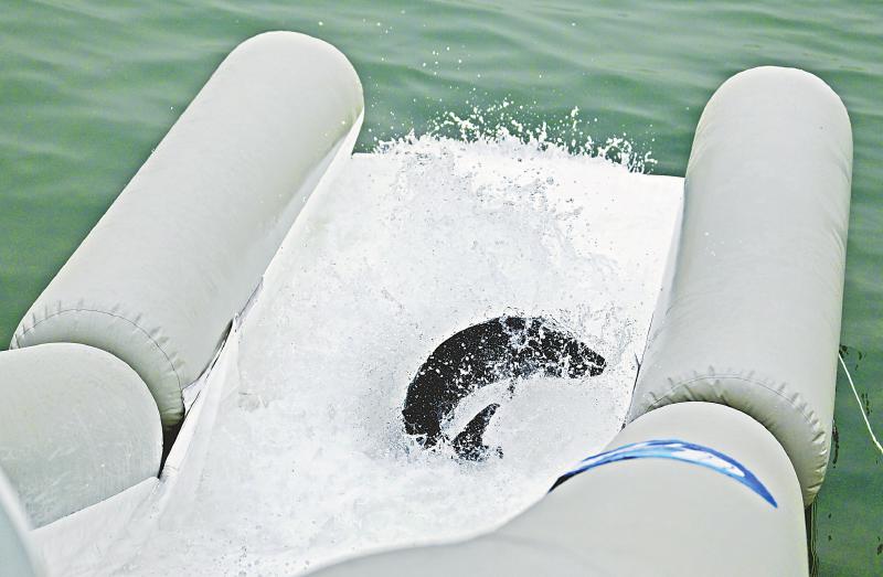 4月12日,“放流中华鲟共护长江美”2025年中华鲟放流活动在湖北省宜昌市胭脂园长江珍稀鱼类放流点举行。超2万尾中华鲟子二代回归长江,包括6月龄大小的子二代中华鲟2.3万尾,3—16岁大个体子二代中华鲟230尾。 新华社记者 杜子璇 摄