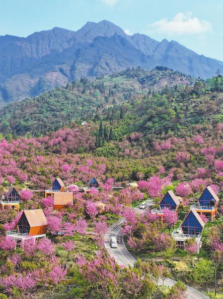 走进阿坝州汶川县漩口镇赵公村,400亩樱花盛开,错落有致的乡村民宿掩映其中,美景如画。当地通过“村集体+农户+合作社+企业带头人”模式,培养了一批旅游致富带头人,打造了“云里雾里樱花里”等乡村旅游品牌民宿集群,以旅富农。4月12日,阿坝州汶川县“第四届赏花音乐季”在漩口镇赵公村紫坪铺湖畔开幕,6000余名游客前来,在漫山樱花中尽享别开生面的文旅盛宴,展现了“赏花+”模式激活乡村振兴的新动能。
