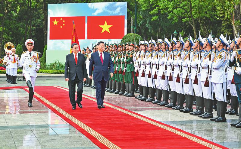 习近平抵达河内对越南进行国事访问,同越共中央总书记苏林举行会谈:要增强战略定力,共同反对单边霸凌行径,维护全球自由贸易体制和产业链供应链稳定