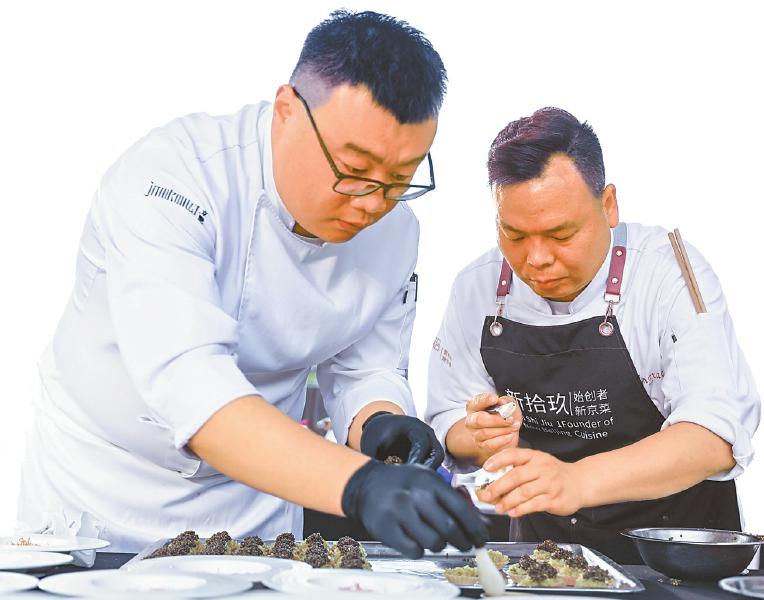 “味要正,形要新。”擅长新式潮州菜的菁禧荟创始人杜建青,用松叶蟹、鱼子酱、清鸡汤等食材,做成形似琥珀、口感Q弹的花椒蟹肉冻。不仅是鱼子酱,杜建青充分利用鲟鱼其他部位的做法,让各位大厨打开了新思路。川菜大厨制作的鱼子酱拌面、藤椒鱼唇等菜品,既发挥了川味麻辣鲜香的特色,又增加了菜品中的胶原蛋白含量。