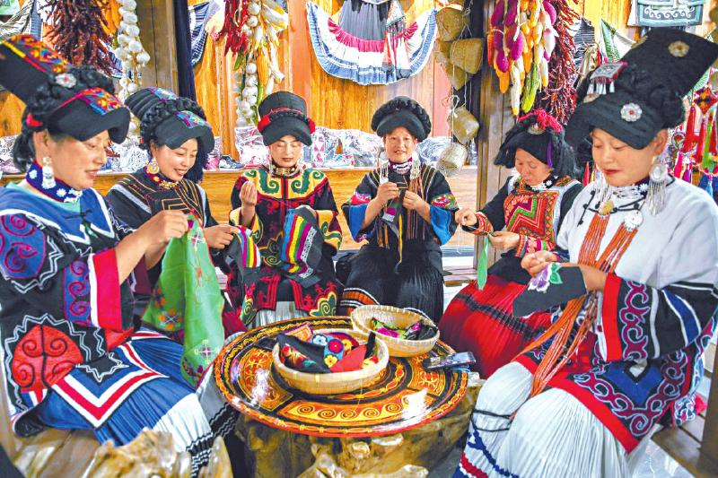 当年要靠“哄”才留下的绣娘队伍不断发展壮大。迄今为止,参加彝绣培训的多达3000余人,930多名当地妇女实现了“零投入”的居家灵活就业。绣娘们白天绣花,晚上直播带货,其中十多人自己开店当起老板。据不完全统计,有的绣娘自己开的工坊,月营业额最高可达六七万元。即使单靠做绣娘挣钱,手艺好、绣品多的一个月也可以赚到两三千元。