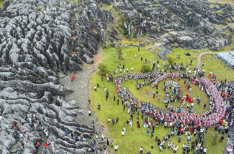 4月26日,省级非物质文化遗产——兴文苗族花山节传承展示活动,在宜宾市兴文县兴文石海景区举行。活动现场,苗族同胞身着节日盛装,跳起芦笙舞,参加巡游等传统民俗表演,吸引众多游客参与。 四川日报全媒体记者 何海洋 摄