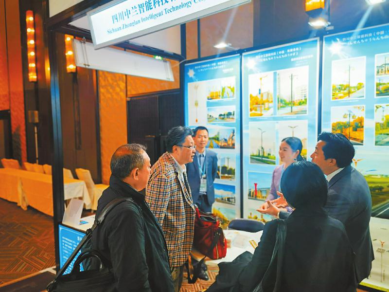 在展区尽头,铃木琢也和几名日本企业负责人找到了四川中兰智能科技有限公司。这是一家户外景观亮化一站式整体解决方案供应商。展位前,双方聊得投入,交换名片、拍照合影,10多分钟后,全球建设股份有限公司代表董事郡文治主动提出,希望到中兰智能科技的四川工厂实地洽谈。