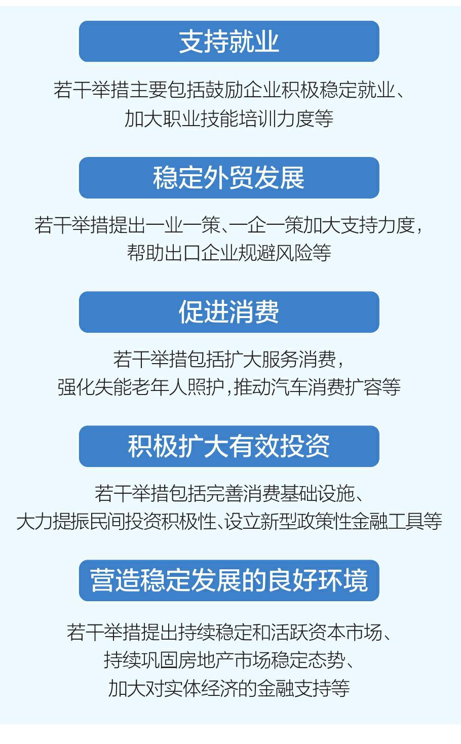 在促进消费方面,若干举措包括扩大服务消费,强化失能老年人照护,推动汽车消费扩容等。