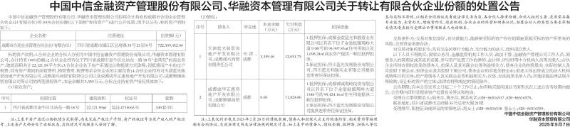 • 中国中信金融资产管理股份有限公司、华融资本管理有限公司关于转让有限合伙企业份额的处置公告