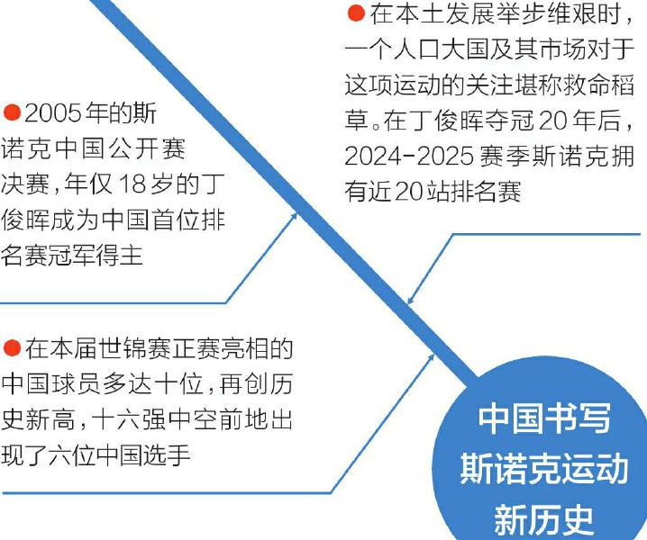 对于斯诺克运动来说,那是一个新的阶段。20年前,欧盟的烟草广告禁令让斯诺克失去长期合作的赞助商,比赛时长的不确定性也不受电视转播青睐,2005—2006赛季,斯诺克排名赛缩水至一年只有6站。在本土发展举步维艰时,一个人口大国及其市场对于这项运动的关注堪称救命稻草。在丁俊晖夺冠20年后,2024—2025赛季斯诺克拥有近20站排名赛。