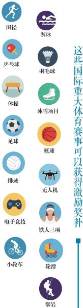 足球世界杯预选赛、奥运会预选赛、中国杯国际足球赛,篮球五人制世界杯(含预选赛)、奥运会预选赛、攀岩世界锦标赛,轮滑世界锦标赛等,可享受一次性最高300万元的奖补。电子竞技全球总决赛需同时满足现场观赛人数10000人以上且票房收入1000万元以上的条件,可申请最高300万元的奖补。