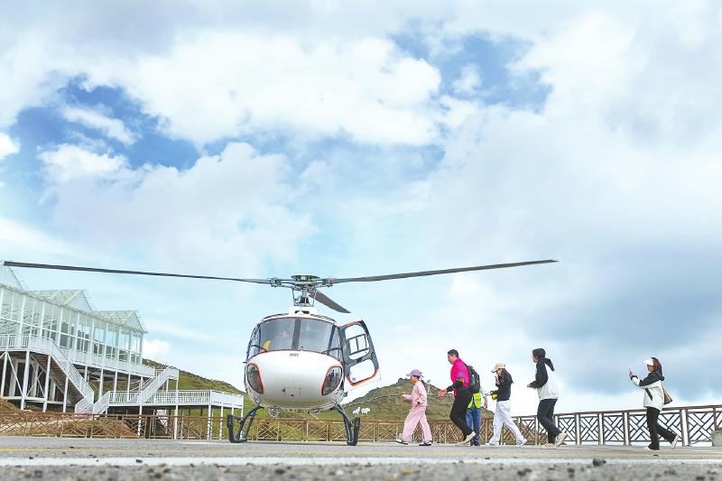•   近日,雅安市荥经县的牛背山景区开通直升机服务,吸引游客打卡。 雅安观察 黄刚 摄