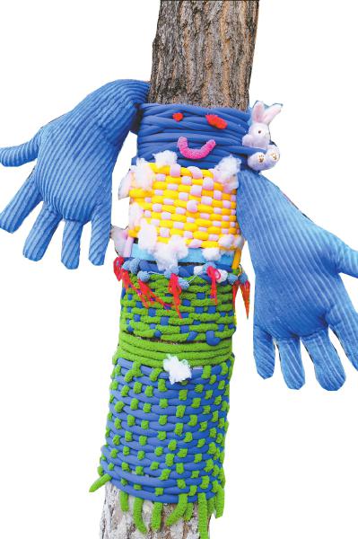 使用旧玩具、毛线边角料包裹树干,艺术化的改造,逐渐延伸到居民身边。该中心也逐渐从小朋友们的“第三空间”“手工乐园”,逐渐影响更多成年人。
