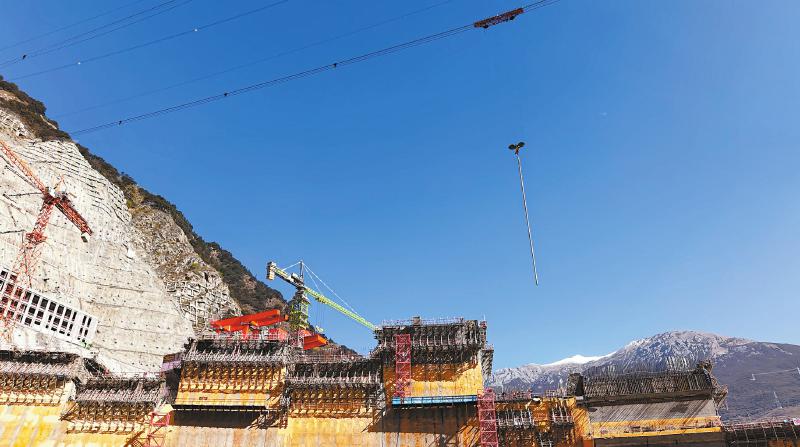 水电站最大坝高217米,混凝土浇筑总量达251万立方米。叶巴滩水电站场址所在地昼夜温差明显,极端气温条件下,会出现最高温度达37.1摄氏度,最低温度达零下23.5摄氏度的气温状况。这种气候条件下,混凝土容易产生温度裂缝。项目团队通过优化施工组织实现转仓无缝衔接,在国内高海拔寒冷地区首次实现大坝混凝土全年连续浇筑。