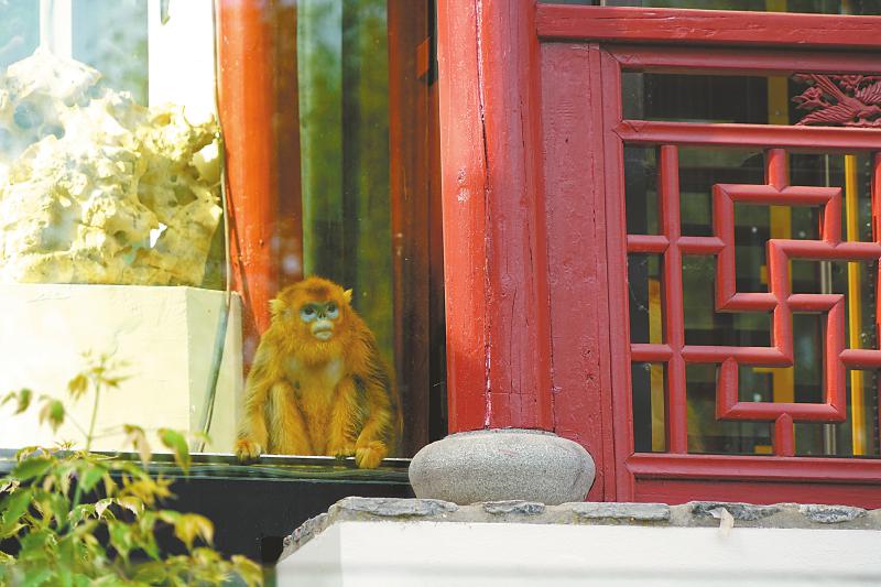 比利时 布吕热莱特 天堂动物园 这是5月14日在比利时布吕热莱特的天堂动物园拍摄的金丝猴。 当地时间14日下午,在隆重的欢迎仪式中,来自中国的三只金丝猴抵达比利时天堂动物园。这三只金丝猴为一雄两雌,它们将封闭式栖居于园方特意准备的一座中国风格的楼阁建筑中,完成一个月的检疫隔离后与公众正式见面。根据园方与中国野生动物保护协会签署的协议,双方将开展为期10年的金丝猴保护合作。新华社记者 张兆卿 摄
