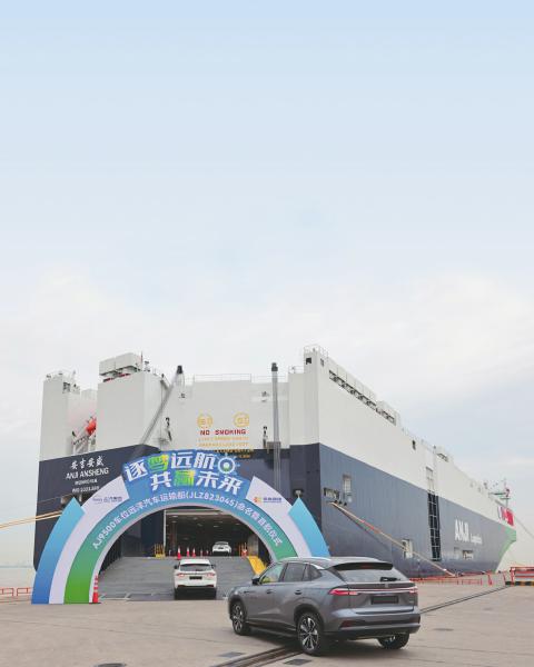 4月底,配置9200个标准装载车位的新能源汽车运输船比亚迪“深圳号”开启出口首航,创造了已投入运营的全球最大装载量汽车运输船纪录。此次“安吉安盛”轮的首航再次刷新纪录。