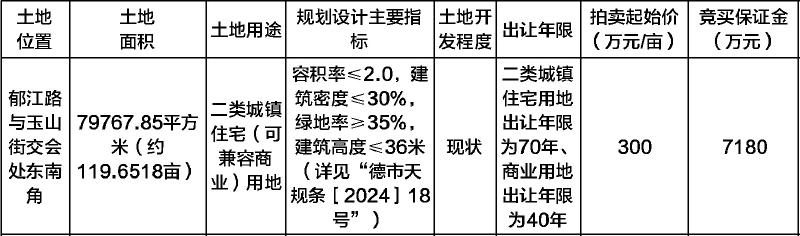 德阳市郁江路与玉山街交会处东南角国有建设用地使用权拍卖出让公告