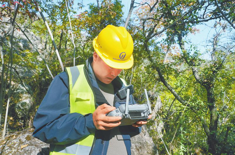 飞手操作无人机吊装施工材料。攀枝花观察湛璐霜 摄