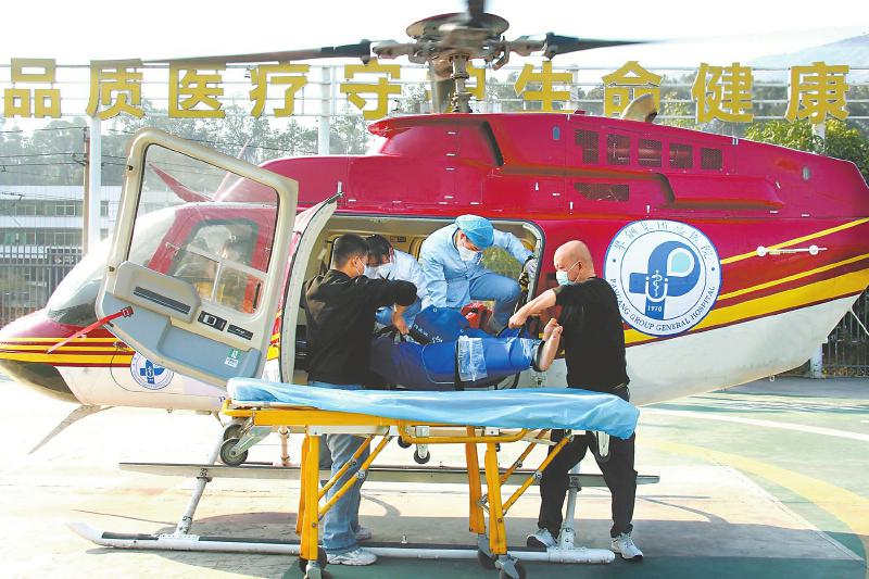 5月13日上午,会理市黎溪镇的郭某某经历了一场惊心动魄的生死考验。当天,他驾驶摩托车时不慎摔成重伤,大量泥沙呛入气道,呼吸几乎停滞。命悬一线之际,攀钢集团总医院的空中救援直升机呼啸而至。“开车2小时的路程,直升机只用了13分钟。”攀钢集团总医院常务副院长易正金说,因为送医及时,医护人员用90分钟的紧急抢救帮郭某某抢回一条命。