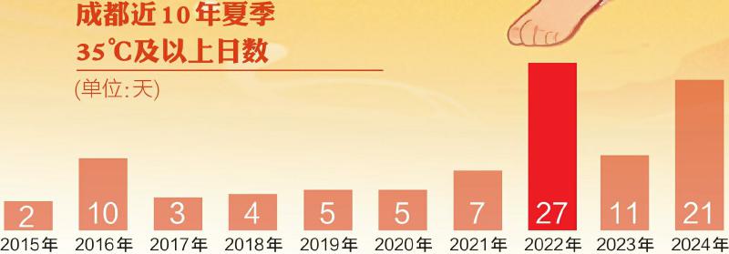 成都常年夏季时长109天,去年达到139天