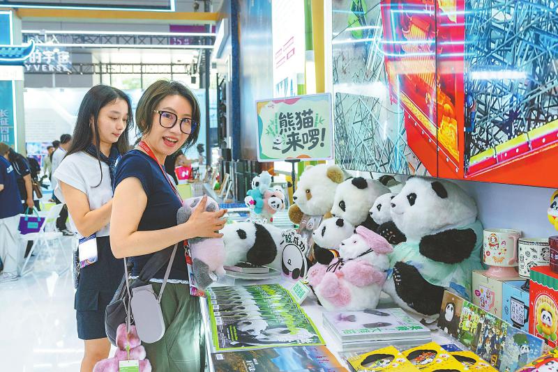 步入四川展馆,随处可见的大熊猫玩偶、三星堆文创等代表性元素格外亮眼。