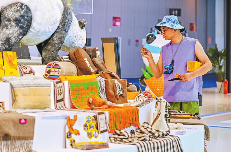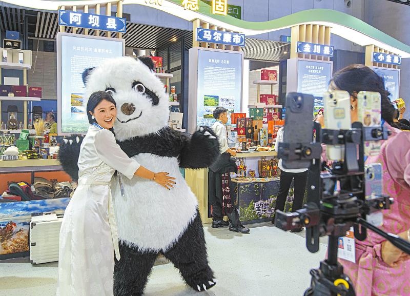 “大熊猫”现场助力阿坝县主播带货。四川日报全媒体记者 何海洋 摄
