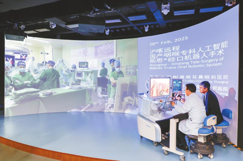 今年2月底,复旦大学附属眼耳鼻喉科医院头颈外科主任陶磊教授团队,操控博恩思的AI+手术机器人系统,为一名身在新疆维吾尔自治区喀什地区第二人民医院的患者,精准实施喉部声门区肿瘤切除术。整场手术耗时50分钟,手术出血量不足1毫升。医生和患者跨越了5000公里,优质医疗变得触手可及。