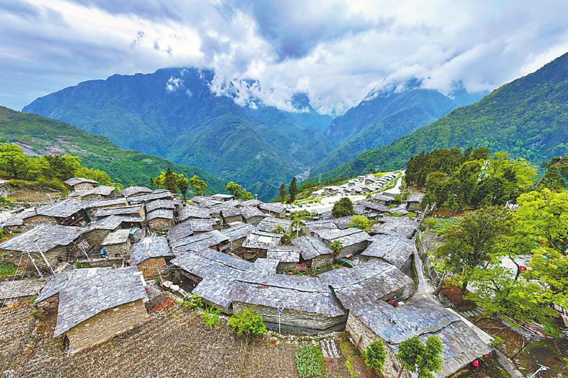 如何把坚硬的巨石制成厚度均匀的薄片?当地老人回忆,过去村里有石匠,专用石斧为石头造型,制成石瓦,再寻一根结实整木作梁,拌黄泥巴和其他碎石、零散木材为墙,筑成住处——“石头房”。“石头房”也被称作碉房,距今已有300多年历史,体现了当地民众就地取材的智慧。