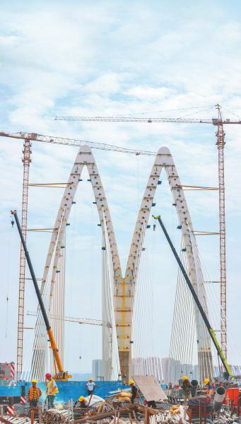 近日,遂宁市涪江六桥(袁家坝渡改桥)建设工程现场,大桥边跨顺利合龙,为全线通车奠定重要基础,预计6月底该项目就能完成过江通道所有主体结构施工。大桥建成后,将打通遂宁经开区高铁新城、老城区与遂宁市河东新区的跨江通道,有效缓解通德大桥、通善大桥等交通节点的通行压力。刘昌松 摄(C视觉)